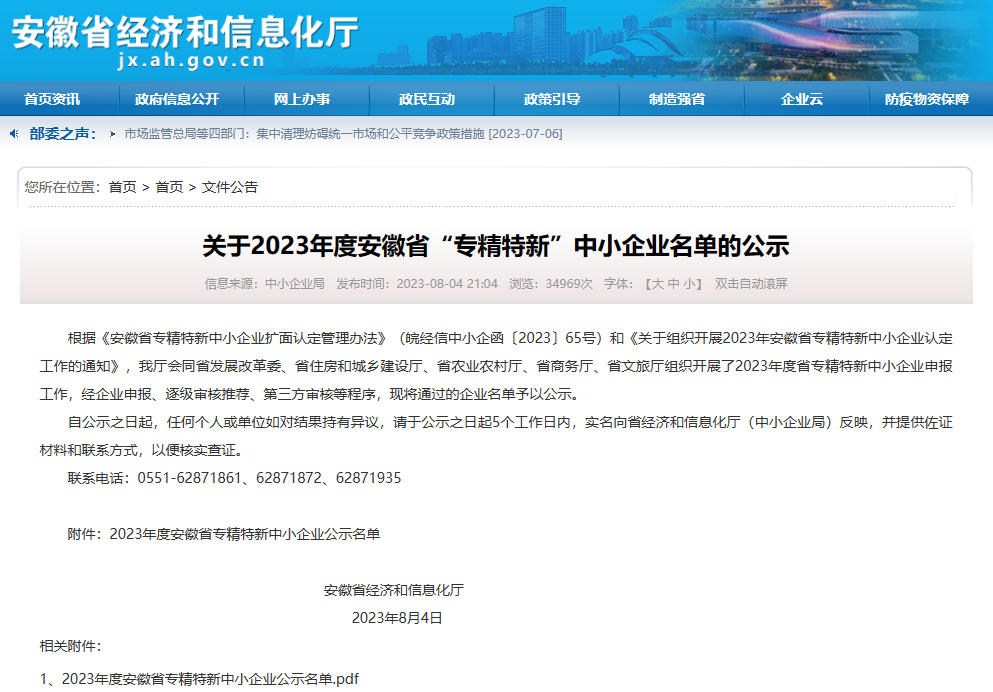 安徽省經(jīng)濟和信息化廳公示了